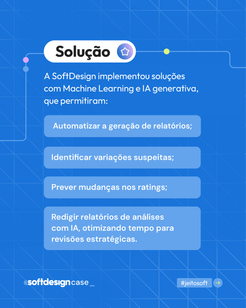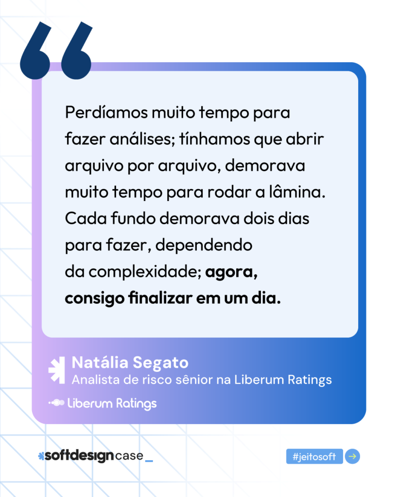 E mais: temos exemplos de aplicações bem-sucedidas, como ocorreu com a Liberum Ratings. Por meio de soluções de ciência de dados e Inteligência Artificial, aprimoramos a análise de fundos de investimento e reduzimos em 75% o tempo de análise dos dados na empresa.